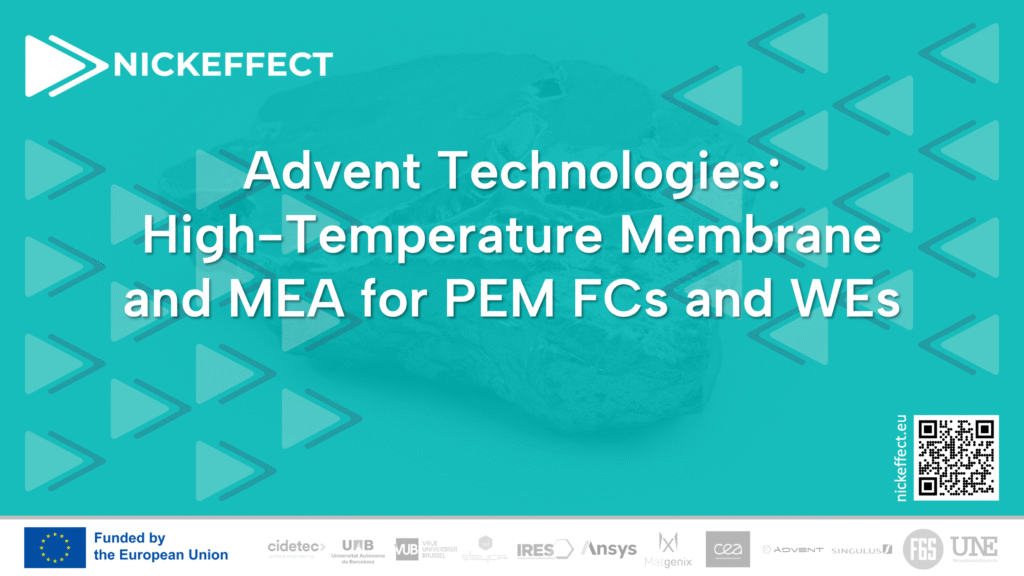 Pt is the state-of-the-art electrocatalyst for HER in PEM-WE and PEM-FC followed by other PGMs, due to their superior catalytic activity because of optimal hydrogen intermediate species binding energy. Through the NICKEFFECT program, Advent hopes to reduce or possibly replace the PGM metal (Pt) on the cathode of this core HT-PEM fuel cell products to significantly reduce the manufacturing cost of the cathode GDL without compromising the performance and stability of the MEA.