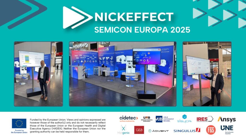 The NICKEFFECT project, represented by partner Singulus Technologies AG, successfully exhibited its cutting-edge advancements at SEMICON Europa 2025 in Munich, focusing on green and sustainable data storage. Aligned with the event’s theme of European economic resilience, the exhibition highlighted the latest results on Platinum (Pt)-free, non-volatile MRAM stacks, a key development in reducing reliance on critical raw materials. Product Manager Matthias Landmann shared these innovative process developments at the Singulus stand, underscoring the project's commitment to enabling a technologically advanced and environmentally sustainable future for the microelectronics industry.