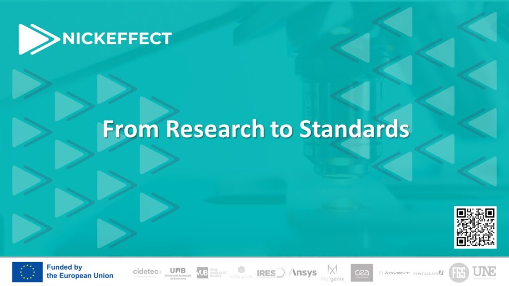 UNE – Spanish Association for Standardization – is participating in the NICKEFFECT project as the partner responsible for the standardization activities. The deliverable D7.3 “Report on standardization landscape and contribution to standards” was developed by UNE and submitted to the EC last 31st May 2023 and now the project is immersed in the contribution to standardization stage.